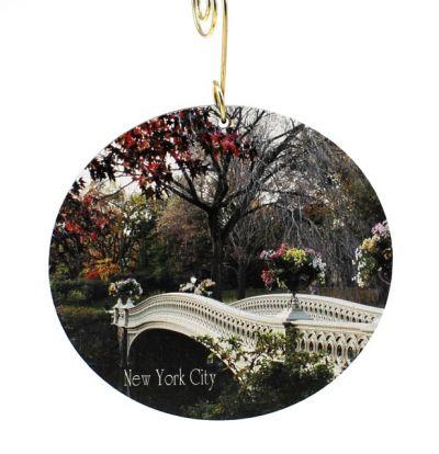 Bow Bridge New York Ornament #S991 made from eco-friendly birch wood or recycled paper, featuring a detailed design of the iconic bridge.
