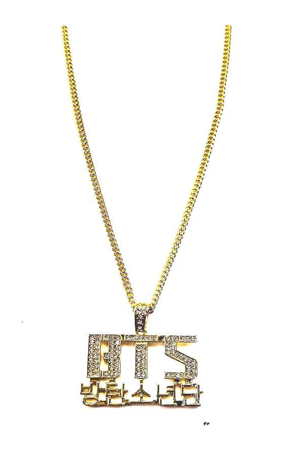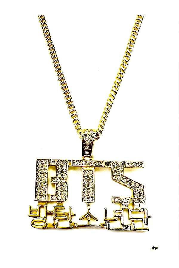 The BTS Rhinestone Pendant Necklace is a must-have accessory for any fan of the globally renowned K-pop group, BTS. This exquisite necklace features a dazzling rhinestone pendant that captures the essence of the group's vibrant energy and style. With a pendant size of 1.3/4" x 1", it is the perfect statement piece that can elevate any outfit, whether you're dressing up for a concert or adding flair to your everyday look.