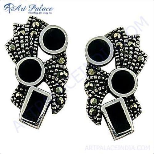 The unique design of these earrings makes them versatile enough to complement any outfit. Whether you're wearing a casual ensemble or a formal dress, the Gun Metal Inlay Gemstone Silver Earrings will enhance your look. Their aesthetic appeal and stylish finish make them a must-have accessory for every jewelry lover.