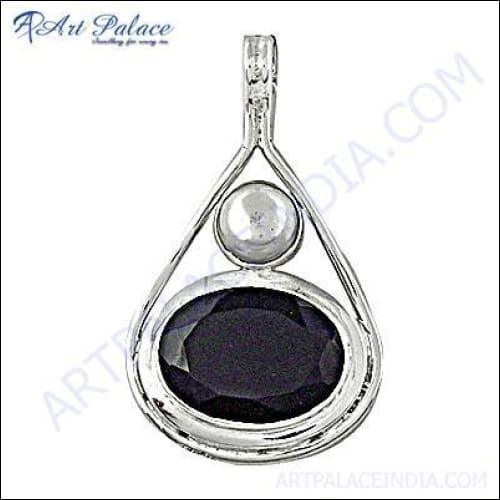 Introducing the exquisite Celebrity Style Black Onyx & Pearl Gemstone Silver Pendant, a stunning piece from Art Palace, Jaipur. This pendant is not just an accessory; it is a statement of elegance and sophistication. Crafted with meticulous attention to detail, this pendant features a beautiful combination of black onyx and lustrous pearls, set in high-quality silver. The design is sleek and sophisticated, making it a versatile addition to any jewelry collection.