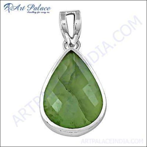 Introducing the Charming Prehnite Gemstone Silver Pendant, a stunning piece of jewelry that will add elegance and sophistication to any outfit. Handcrafted by Art Palace, Jaipur, a renowned company specializing in high-quality jewelry manufacturing and exporting since 1981, this pendant is a true testament to fine craftsmanship and design.