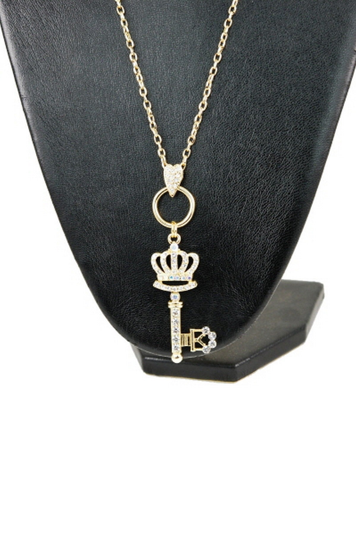 This necklace is not just a piece of jewelry; it is a statement accessory that can elevate any outfit. Whether you're dressing up for a special event or adding a touch of glamour to your everyday look, the Crown Key Pendant Necklace is the perfect choice. Pair it with a simple blouse for a chic look or wear it with a little black dress for a night out on the town.