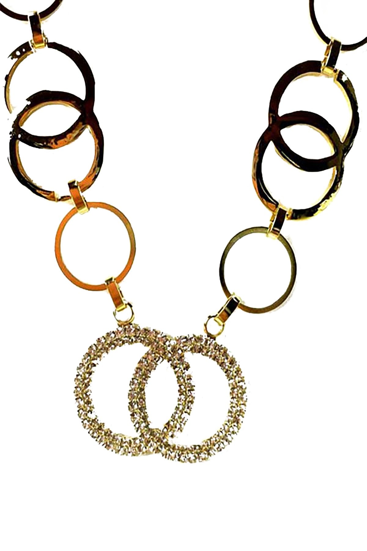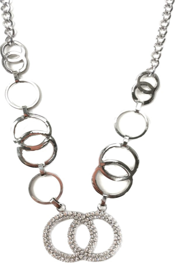 A beautiful crystal circle link necklace with a double plated design, featuring a 20-inch chain, perfect for elegant styling.