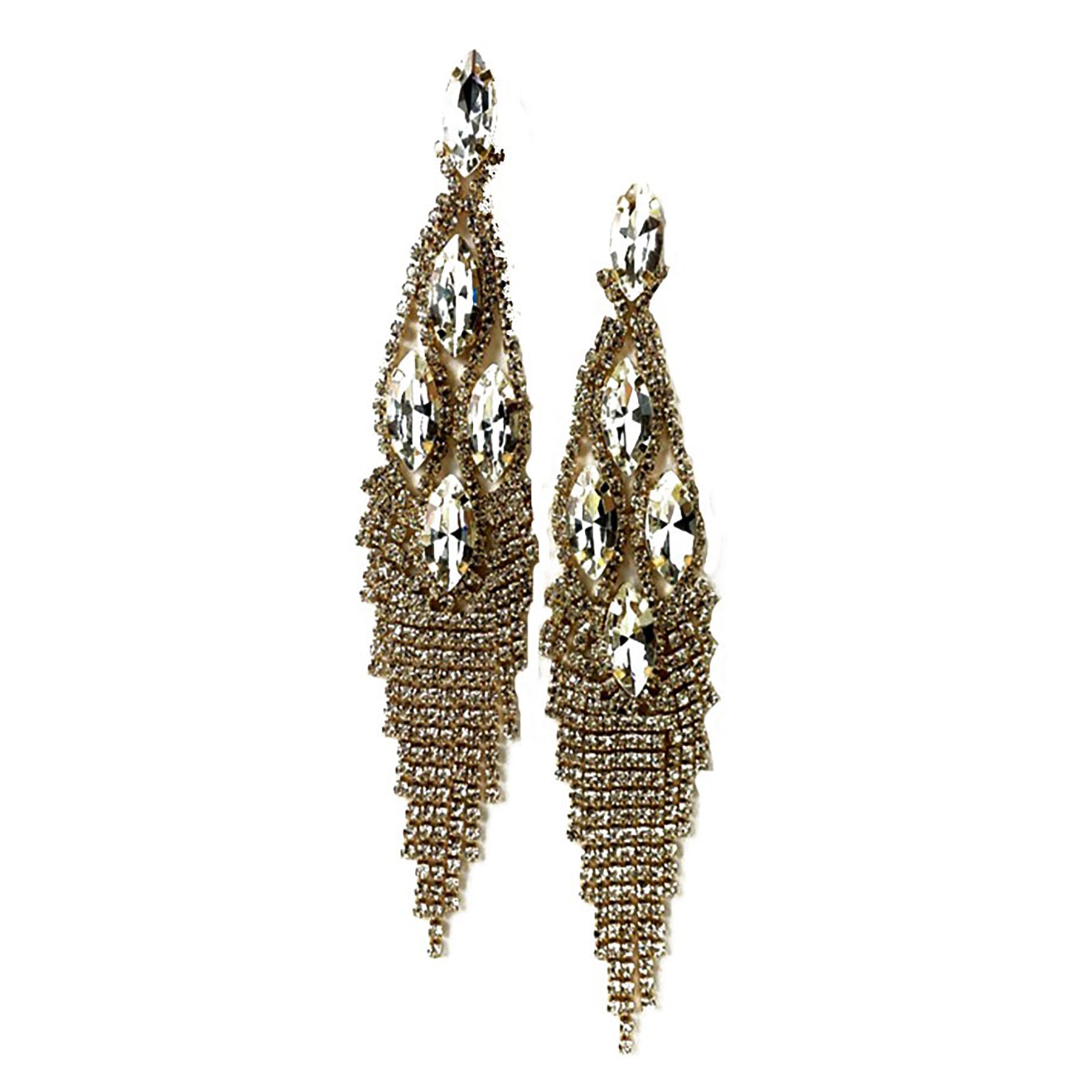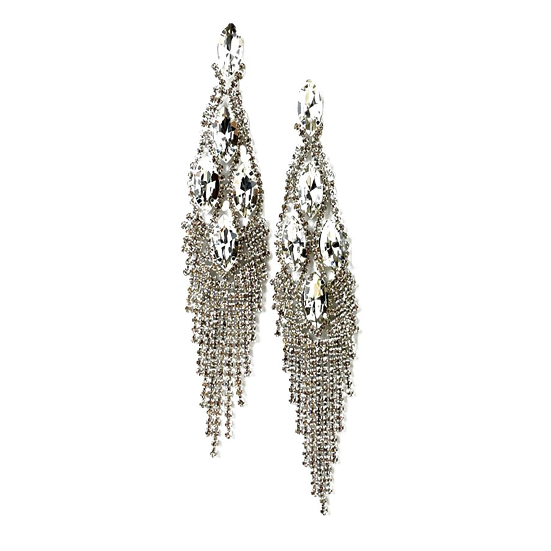 Introducing our exquisite Crystal Fringe Earrings, a must-have accessory for any fashion-forward individual. These earrings are designed to add a touch of glamour to your outfit, making them perfect for special occasions or a night out on the town. With a stunning drop of approximately 5 inches, they gracefully dangle and catch the light, creating a mesmerizing effect that will turn heads.