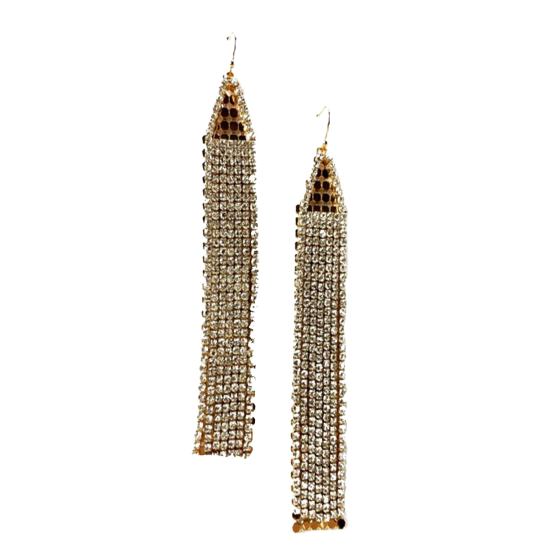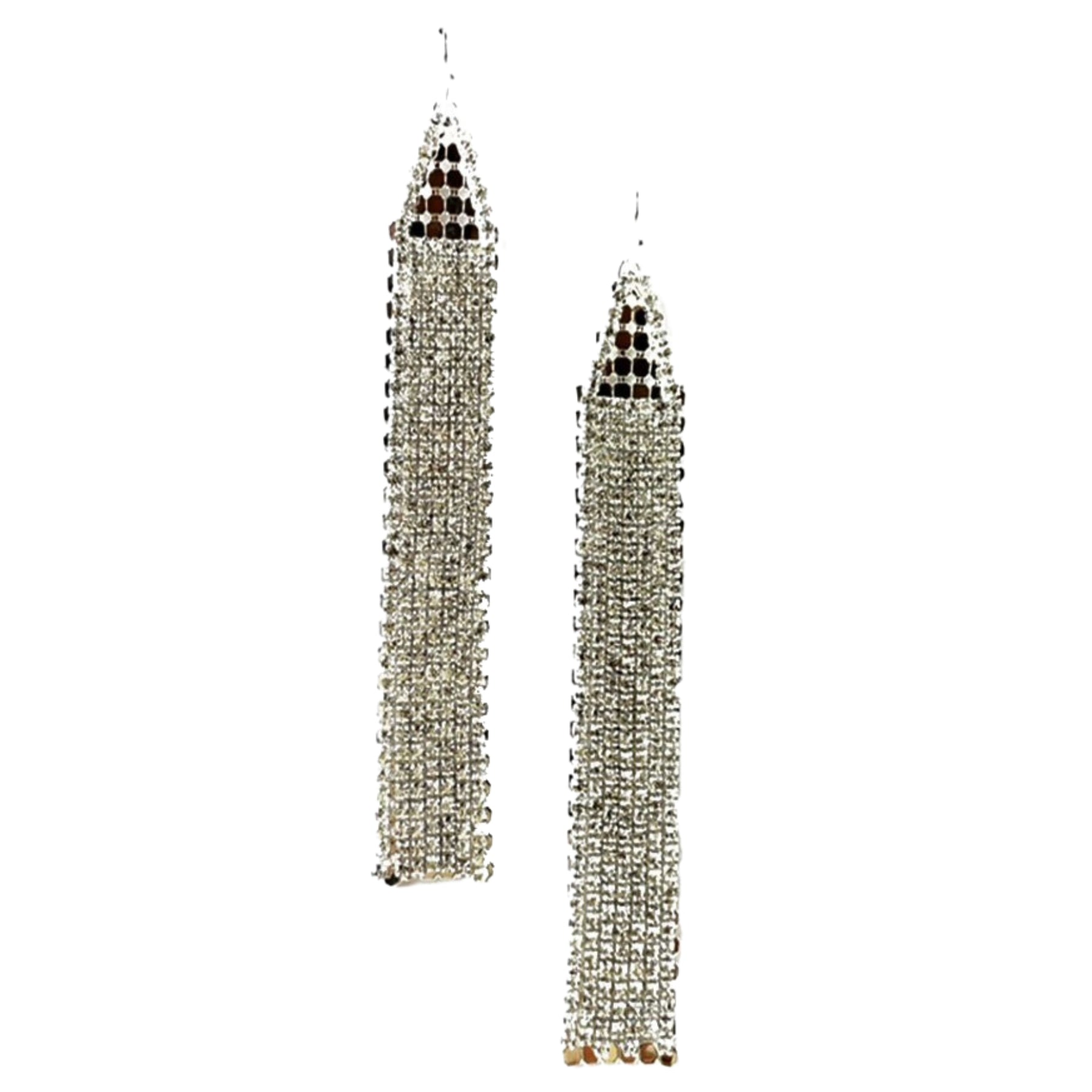 Introducing our exquisite Crystal Fringe Earrings, a must-have accessory for any fashion-forward individual. These earrings are designed to add a touch of glamour to your outfit, making them perfect for evening events, parties, or even a night out on the town. With a stunning drop of approximately 4.25 inches, these earrings are sure to catch the eye and turn heads wherever you go.