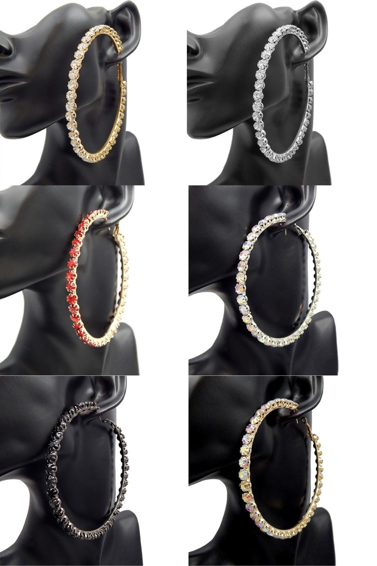 Introducing our exquisite Crystal Full Cover Hoop Earrings, designed to add a touch of elegance to any outfit. These earrings feature a stunning full cover of sparkling crystals that catch the light beautifully, making them a perfect accessory for both casual and formal occasions. With a diameter of approximately 80mm, they are the ideal size to make a statement without being overwhelming.
