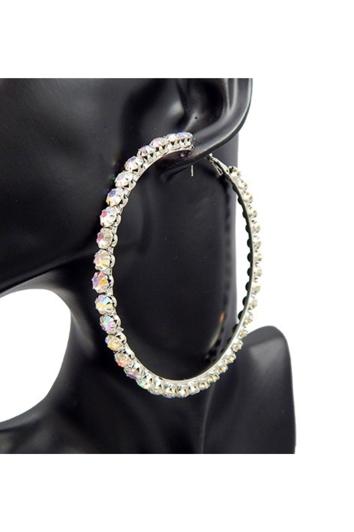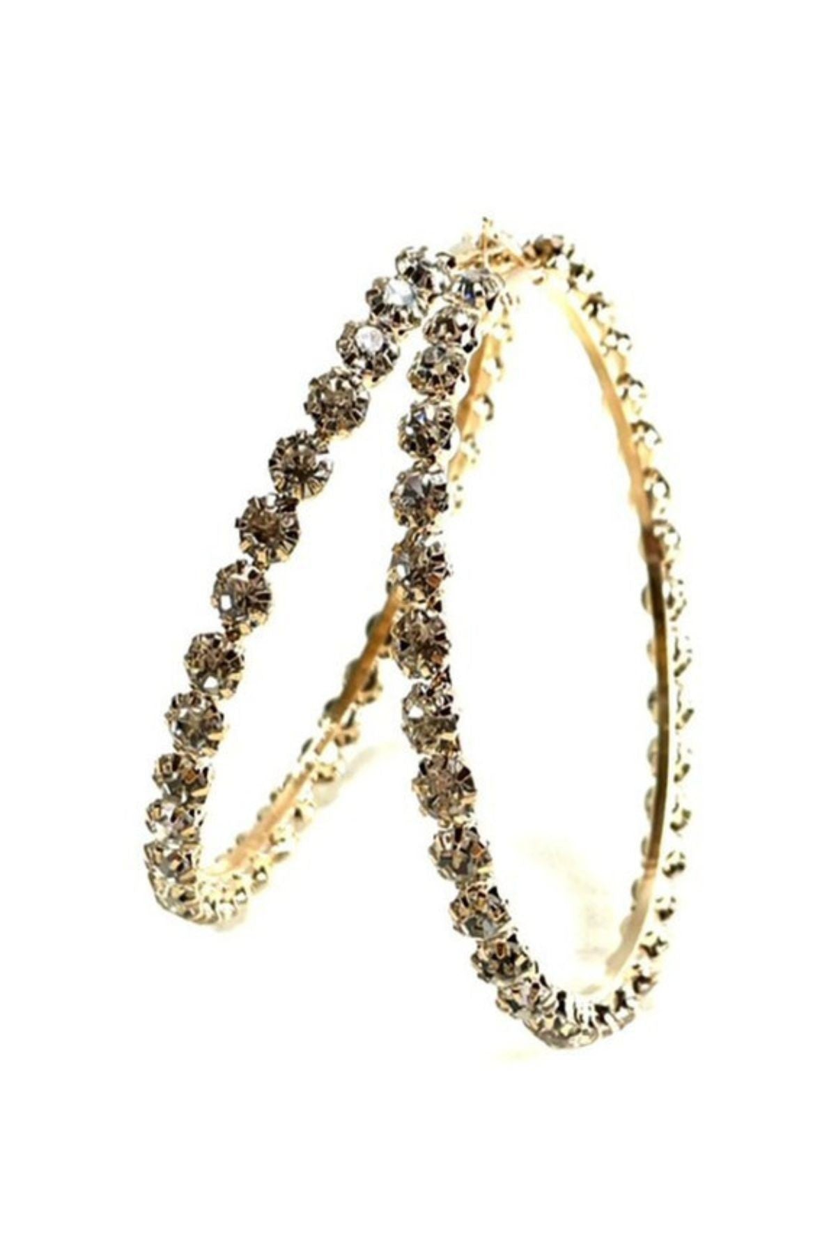 Elegant Crystal Full Cover Hoop Earrings with sparkling crystals and latch back closure, measuring 80mm in diameter.