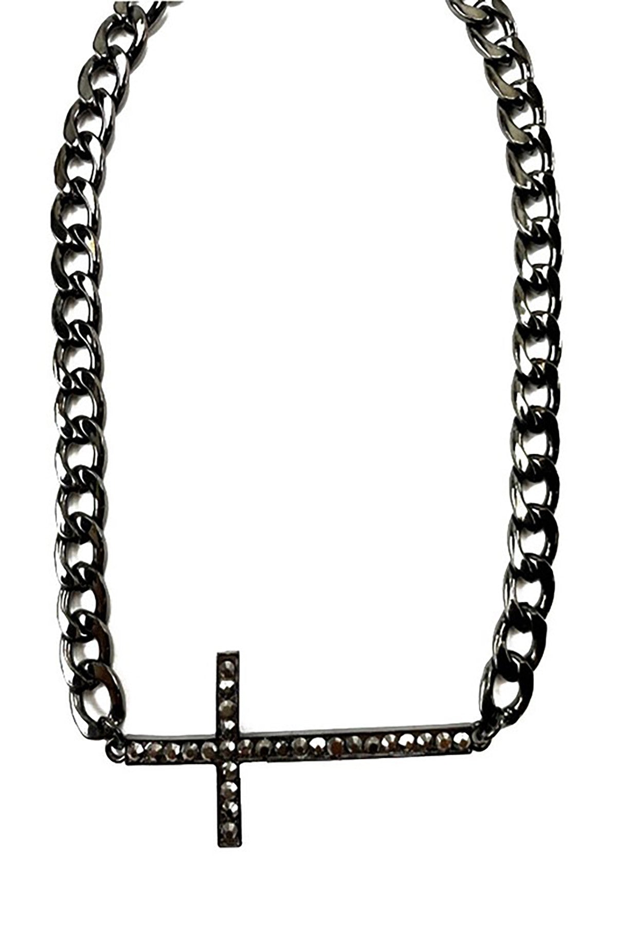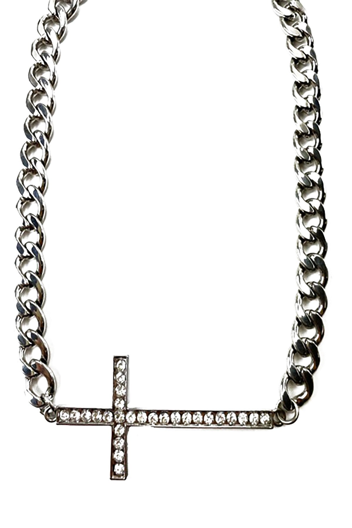 Measuring at a length of 20 inches, the Crystal Studded CROSS Necklace sits elegantly on the neckline, making it a versatile piece that can be layered with other necklaces or worn alone as a statement piece. Its length is ideal for both casual and formal outfits, making it a must-have accessory for any jewelry lover.
