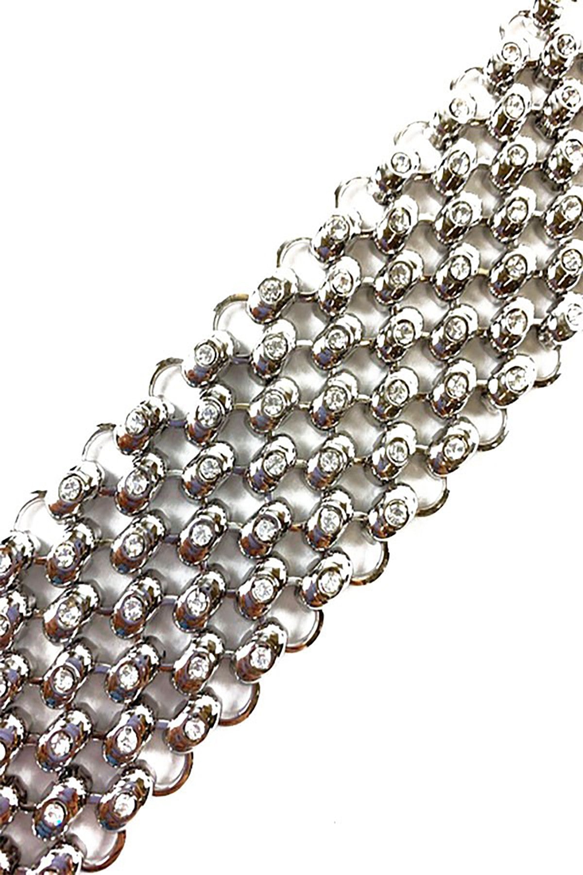 Elegant crystal studded metal chain bracelet with double plating and hinged clasp, showcasing its sparkling details and stylish design.