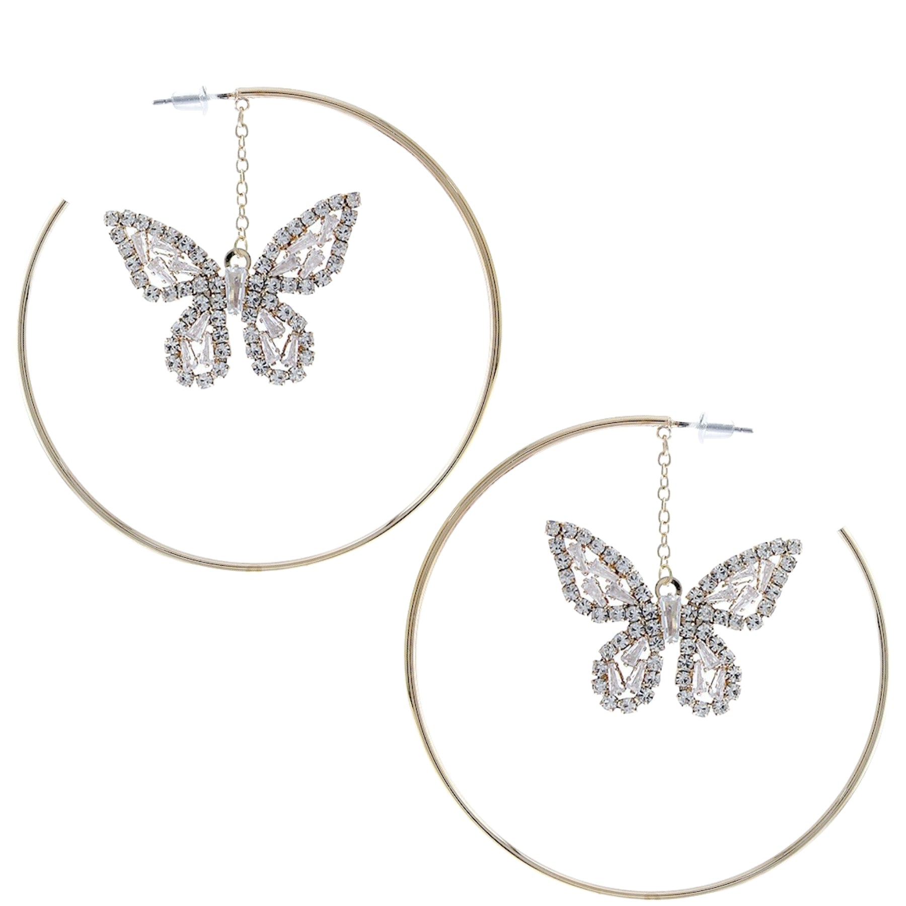 Introducing our exquisite Cubic Zirconia Stone Buttery in 60mm Hoop Earrings, a must-have accessory for anyone looking to enhance their jewelry collection. These earrings are designed to make a statement, featuring a stunning array of cubic zirconia stones that catch the light beautifully. With a diameter of 60mm (2.25 inches), these hoops are the perfect size to add a touch of glamour to any outfit, whether you're dressing up for a special occasion or adding flair to your everyday look.