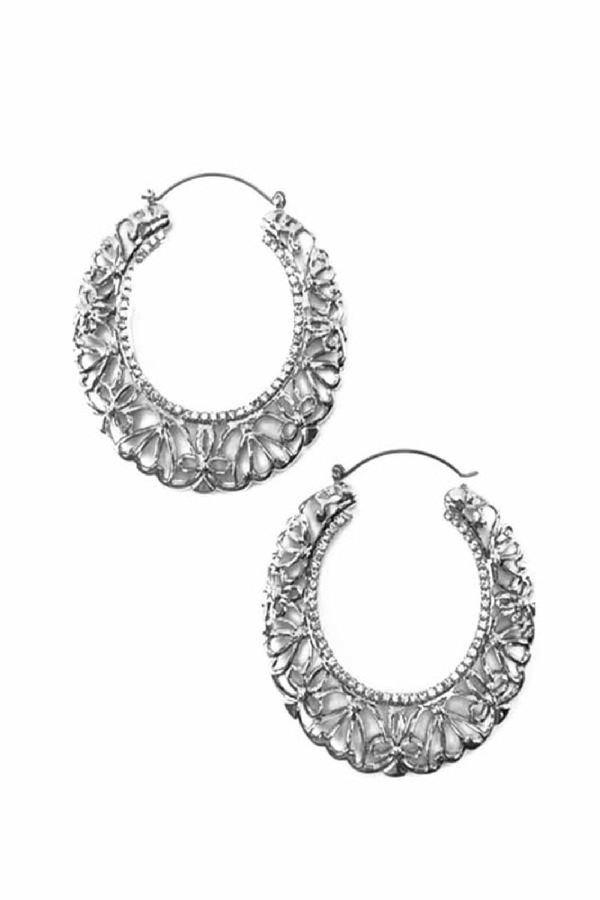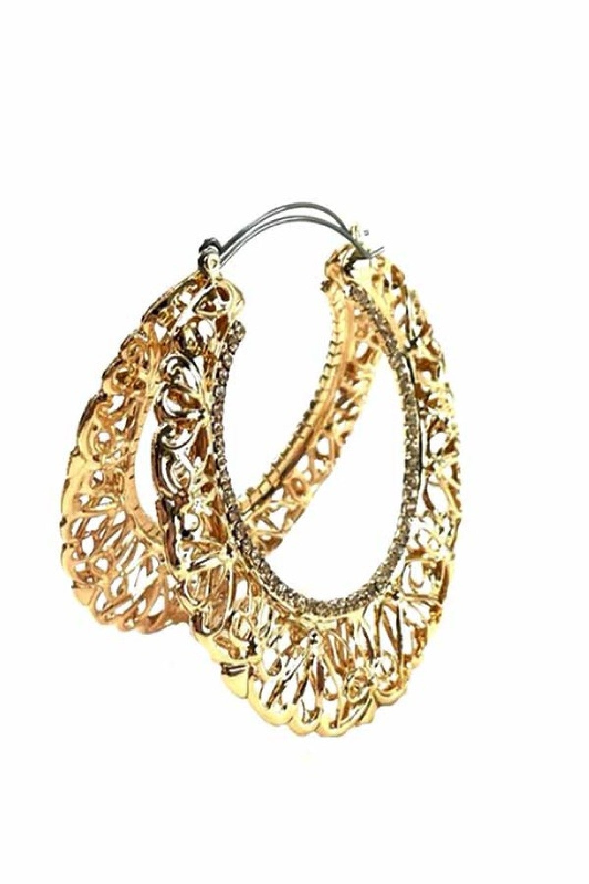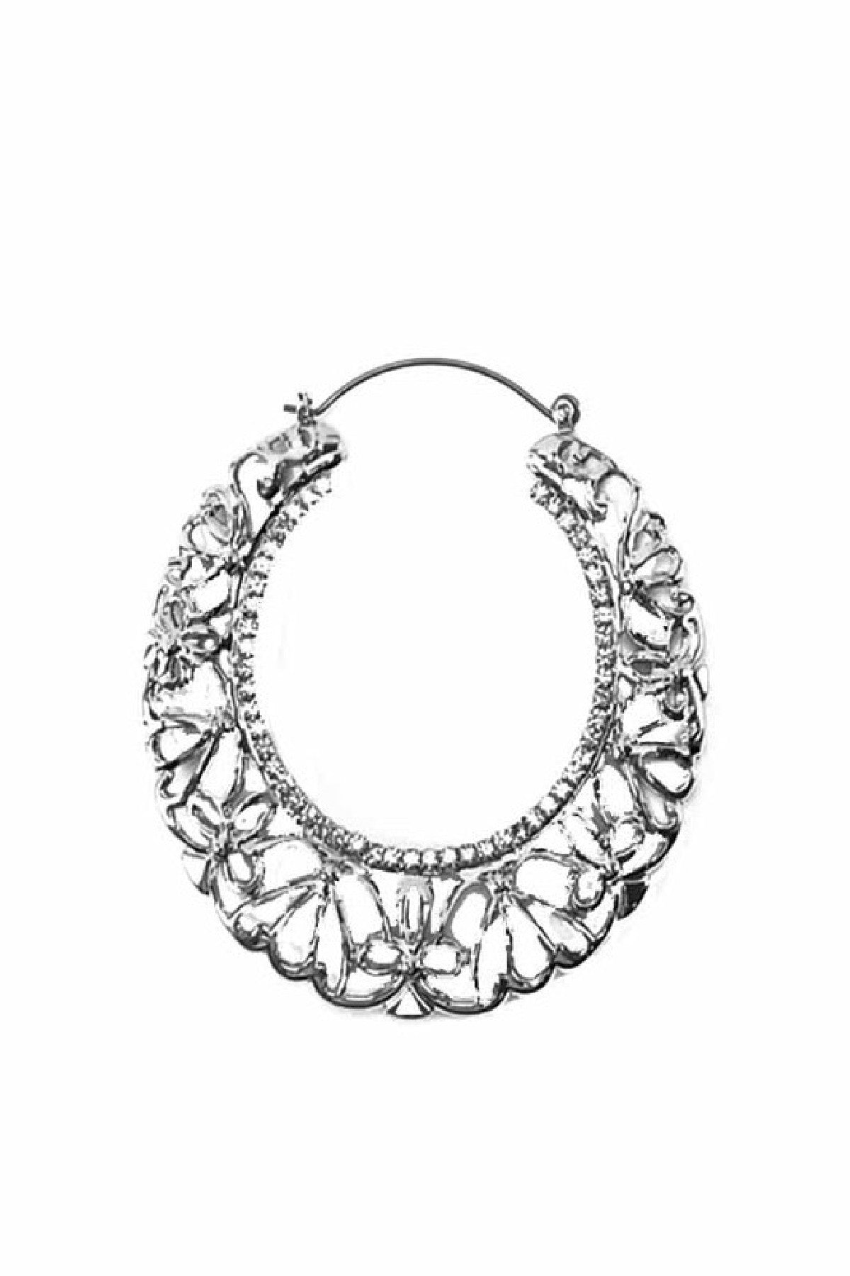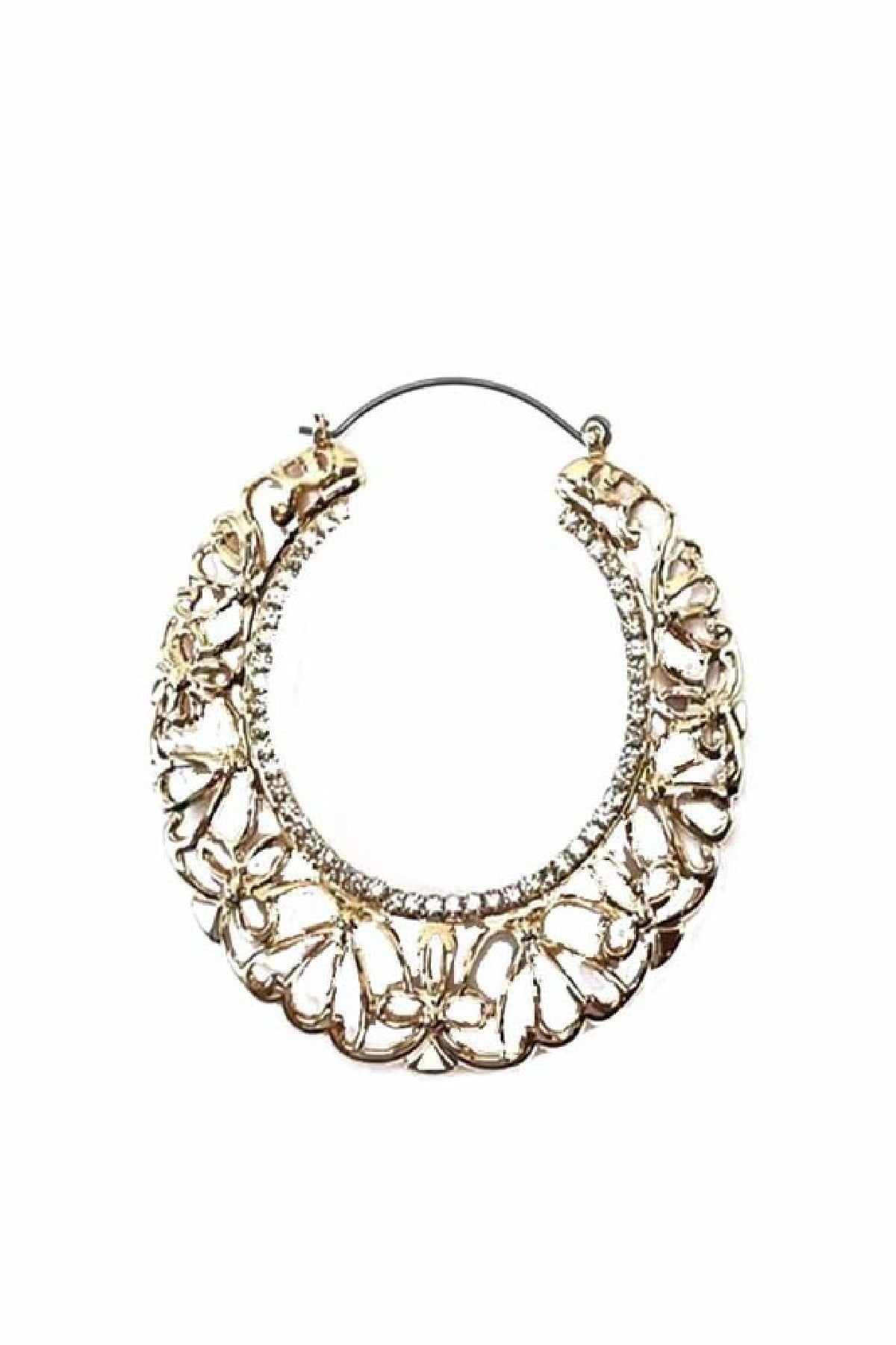 The Cut Off with Rhinestone Hoop Earring features a unique hoop design that is both stylish and sophisticated. The earrings have a drop length of approximately 2.5 inches, making them the perfect size to frame your face without being overly large. The lever back closure ensures a secure fit, allowing you to wear them comfortably throughout the day or night.