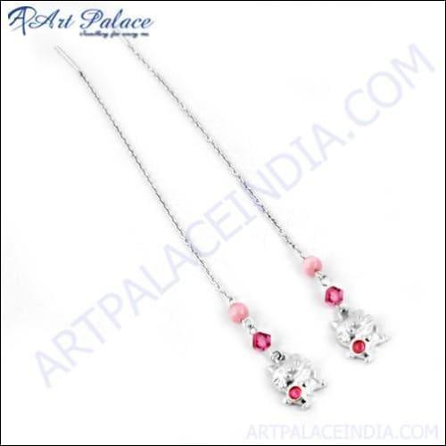 Cute Fashionable Inley Pink Glass Gemstone Silver Earrings showcasing vibrant pink gemstones set in elegant silver.