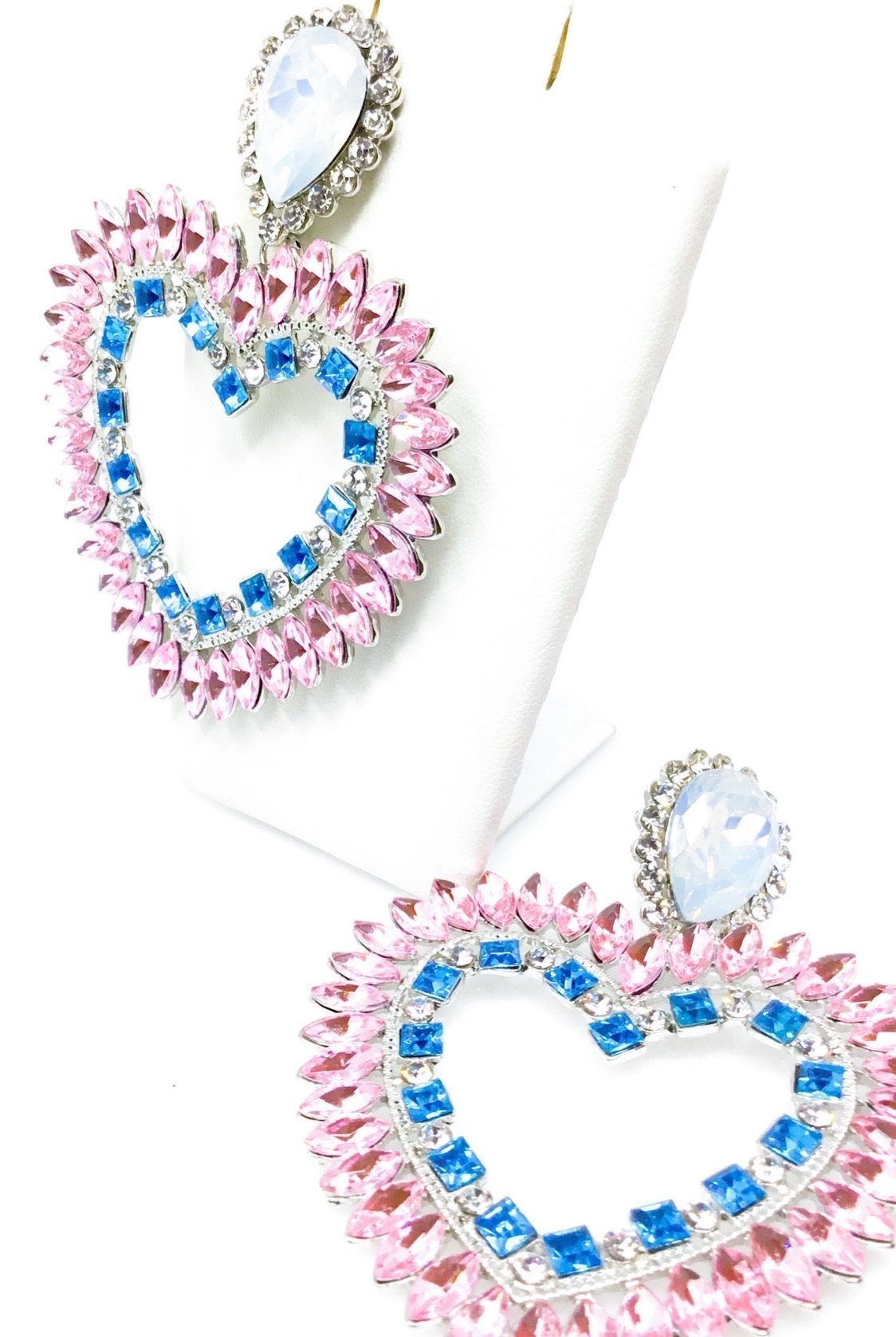 The Dangle - Love Obsessed earrings feature a unique geometric design that is both modern and timeless. Available in three beautiful colors—silver, pink, and blue—these earrings can complement any outfit, from elegant evening wear to everyday casual attire. Their versatility makes them a must-have accessory for fashion enthusiasts.