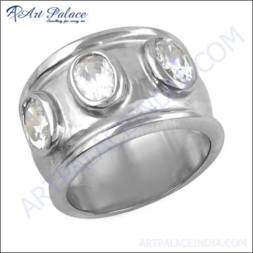 Elegant Dazzling Cubic Zirconia Gemstone Ring made of 925 Sterling Silver, showcasing its intricate design and sparkling stone.
