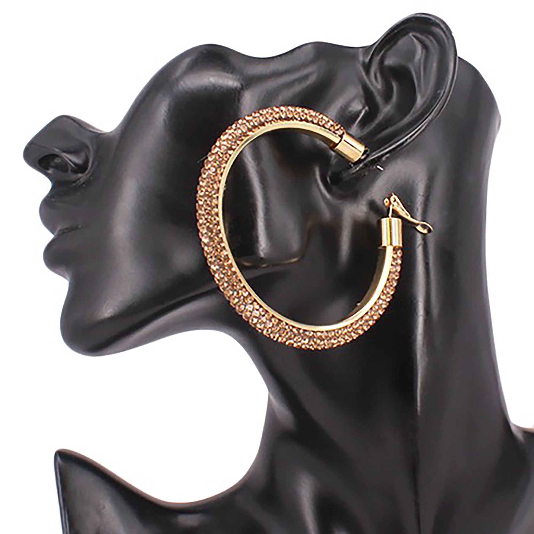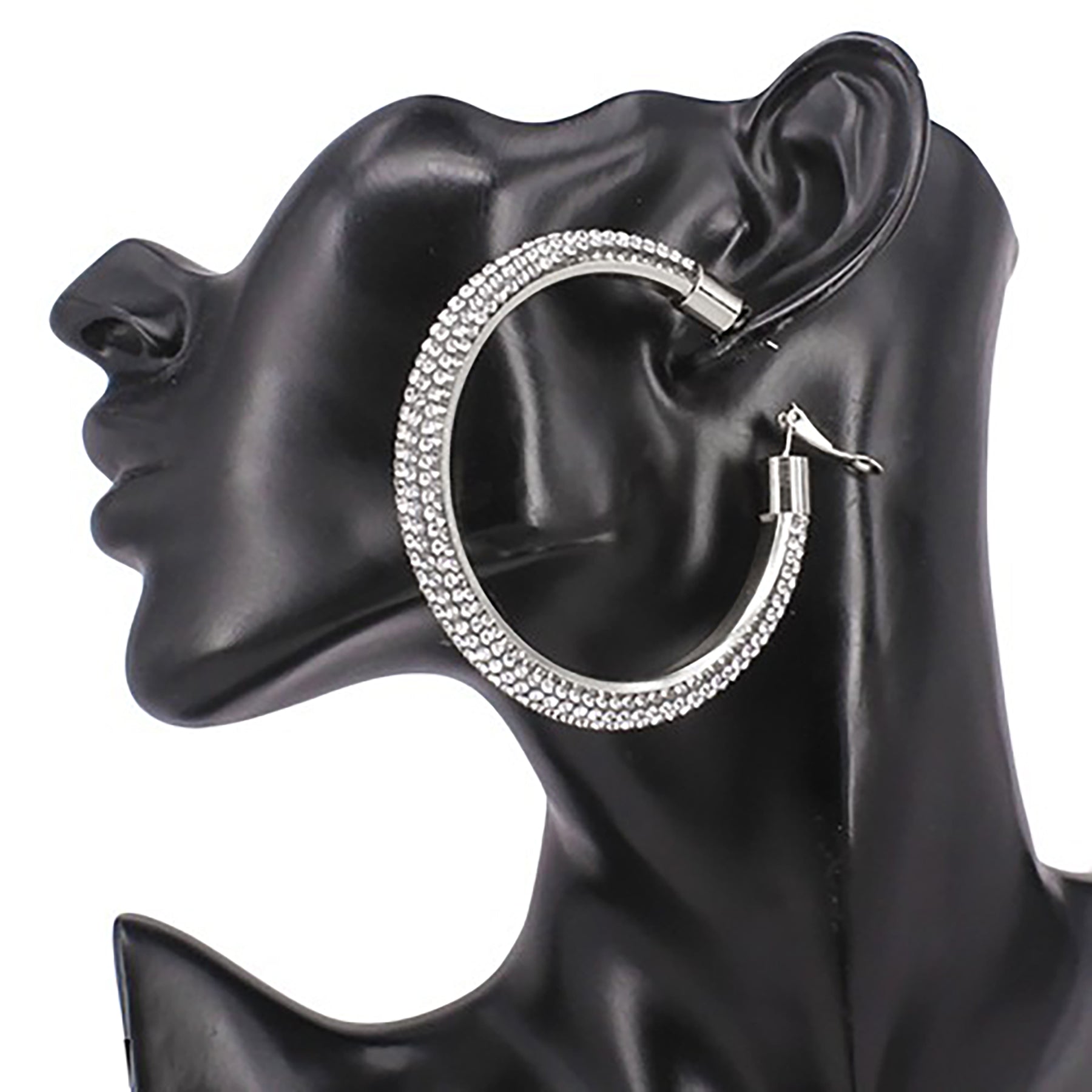 Introducing our stunning 60mm Rhinestone Pave Hoop Earrings, a must-have accessory for anyone looking to add a touch of glamour to their outfit. These earrings are designed to catch the light beautifully, making them perfect for both casual and formal occasions. With a diameter of 2.5 inches, they provide a bold statement while remaining lightweight and comfortable to wear.
