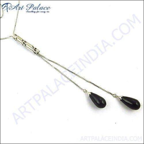 The Elegant Black Onyx and Silver Necklace is a breathtaking piece that showcases the perfect blend of elegance and sophistication. Crafted by the renowned Art Palace in Jaipur, this necklace features exquisite black onyx stones delicately suspended from a sleek silver chain. The unique drop design adds a touch of modern flair, making it an ideal accessory for any occasion.