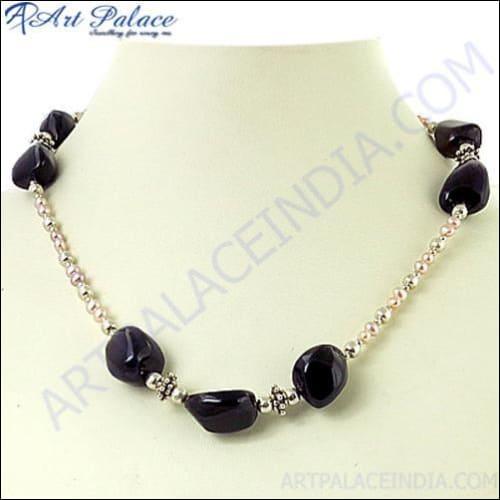 Introducing the exquisite Black Onyx Tumble Silver Necklace, a stunning piece of jewelry that combines elegance with versatility. This necklace is not just an accessory; it is a statement of style and empowerment. Crafted with precision by Art Palace, Jaipur, a company renowned for its high-quality jewelry, this necklace is designed to captivate and inspire.