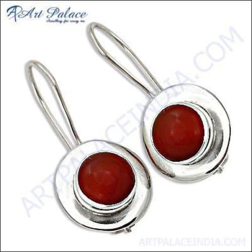 Dropship Elegant Carnelian Gemstone Silver Earrings - Famous Style Jewelry