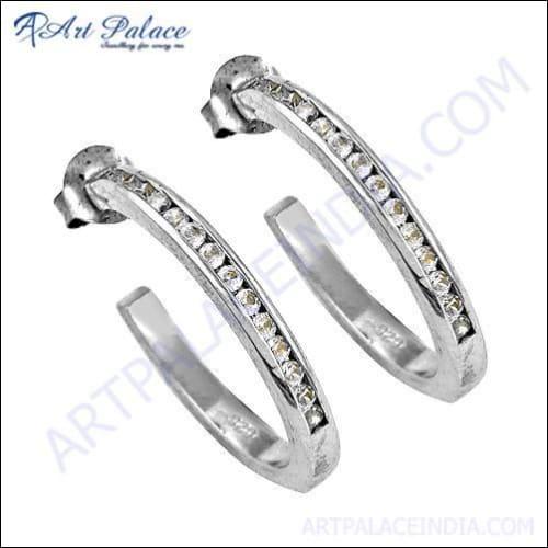 Elegant CZ gemstone silver earrings showcasing intricate design and sparkling stones, perfect for any occasion.