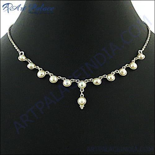 Introducing the Elegant Fancy Pearl & Gemstone Silver Necklace, a stunning piece that embodies elegance and sophistication. This exquisite necklace is not just a piece of jewelry; it is a statement of style and grace. Crafted with precision by Art Palace, a renowned manufacturing and exporting company based in Jaipur, Rajasthan, this necklace showcases the finest quality materials and craftsmanship.
