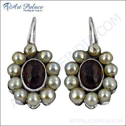 Introducing our Elegant Flower-Shaped Pearl and Garnet Silver Earrings, a stunning addition to any jewelry collection. These earrings are not just accessories; they are a statement of elegance and sophistication. Crafted with care, they feature a beautiful flower shape that is both unique and eye-catching. The combination of lustrous pearls and rich garnets creates a mesmerizing effect that will surely turn heads.