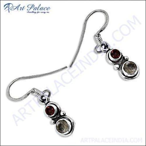 Dropship Elegant Garnet and Rose Quartz Gemstone Silver Earrings