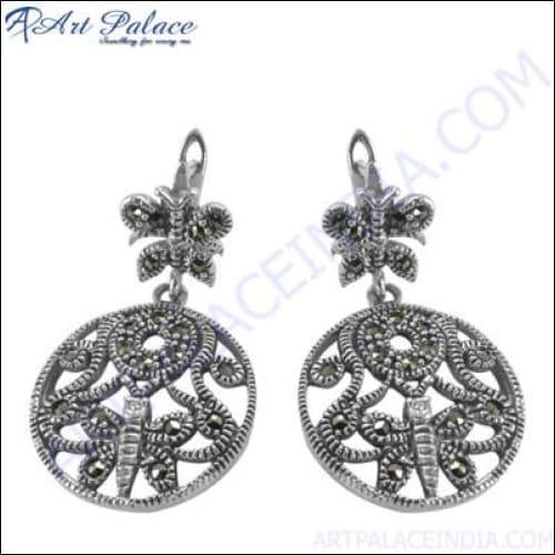 These earrings feature marcasite gemstones, celebrated for their metallic sparkle and vintage appeal. Marcasite adds a touch of antique elegance to the design, creating a timeless piece of art. Marcasite gemstones, with their unique metallic luster, are a mesmerizing sight to behold. These exquisite gemstones are renowned for their brilliance and captivating beauty. The glistening effect of marcasite lends a touch of sophistication and timeless elegance to any jewelry piece. Whether adorning a vintage-style ring, pendant, or earrings, marcasite gemstones create a dazzling symphony of light and dark, offering a striking contrast that makes them stand out.