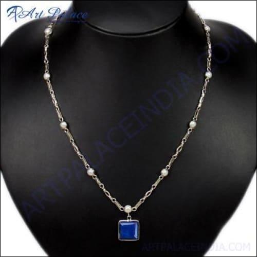 Elevate your style and make a statement with our Elegant Fashion Lapis Lazuli & Pearl Gemstone Silver Necklace. Order yours today and experience the timeless beauty of this exquisite piece. With its unique blend of luxury, elegance, and ethical craftsmanship, this necklace is sure to become a favorite in your jewelry collection.