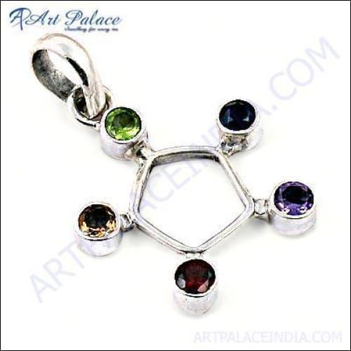 The Elegant Multi-Stone Silver Pendant is a stunning piece of jewelry that combines style and sophistication. This exquisite pendant is designed to enhance your outfit, making it a perfect accessory for any occasion. Whether you are dressing up for a special event or looking for something chic for everyday wear, this pendant is sure to make a statement.