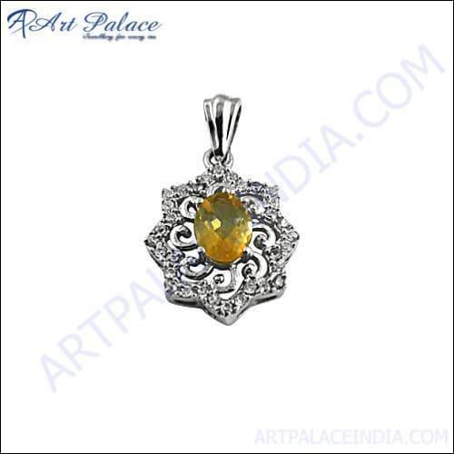 Dropship Elegant Party Wear Citrine CZ Silver Pendant - Shop Now