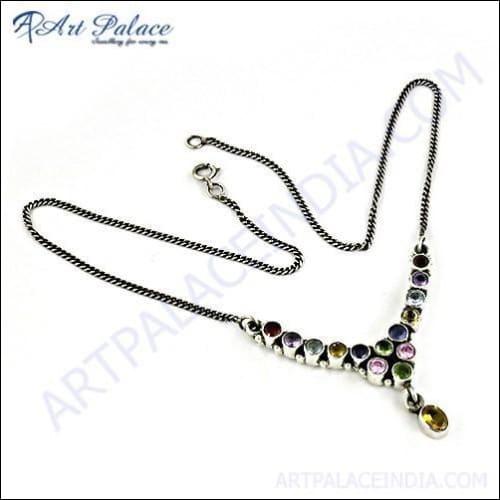 The combination of pink cubic zirconia, amethyst, and garnet gemstones creates a mesmerizing effect that captures attention and admiration wherever you go. The vibrant colors of the gemstones are beautifully complemented by the sophisticated silver chain, making this necklace a versatile accessory that can be worn for both formal events and casual outings. Whether you're dressing up for a wedding or adding a touch of elegance to your everyday look, this necklace is sure to impress.