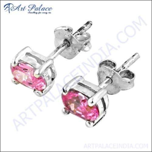 Discover the exquisite beauty of our Elegant Pink Cubic Zirconia Silver Stud Earrings, a stunning accessory that adds a touch of elegance to any outfit. These earrings are designed to captivate with their vibrant pink cubic zirconia stones, which sparkle brilliantly in the light. Perfect for both casual and formal occasions, they are a versatile addition to your jewelry collection.