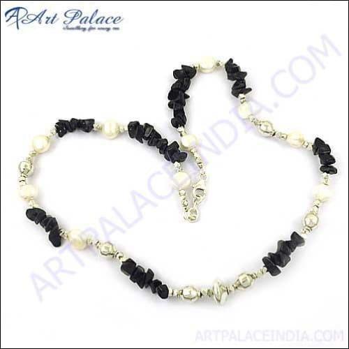 Introducing the Elegant Silver Gemstone Pearl Necklace, a stunning addition to your jewelry collection that embodies elegance and sophistication. This exquisite beaded necklace is designed to elevate your style, making it the perfect accessory for any occasion. Whether you're dressing up for a formal event or adding a touch of glamour to your everyday outfit, this necklace is sure to impress.