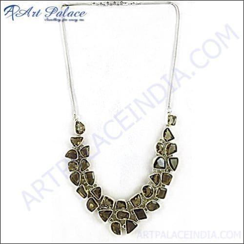 Introducing the Elegant Smokey Quartz Silver Necklace, a stunning piece of jewelry that embodies sophistication and style. This exquisite necklace is designed to elevate your look, making it a perfect accessory for any occasion. Crafted by the esteemed Art Palace in Jaipur, this necklace showcases a rich legacy of quality craftsmanship that dates back to 1981.