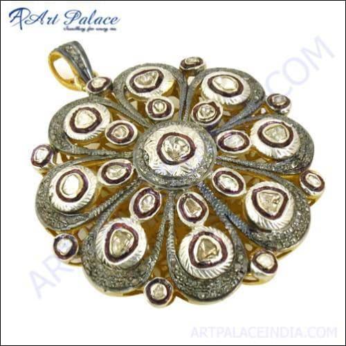 Dropship Elegant Victorian Gold Plated Diamond Silver Pendant for Festival Wear