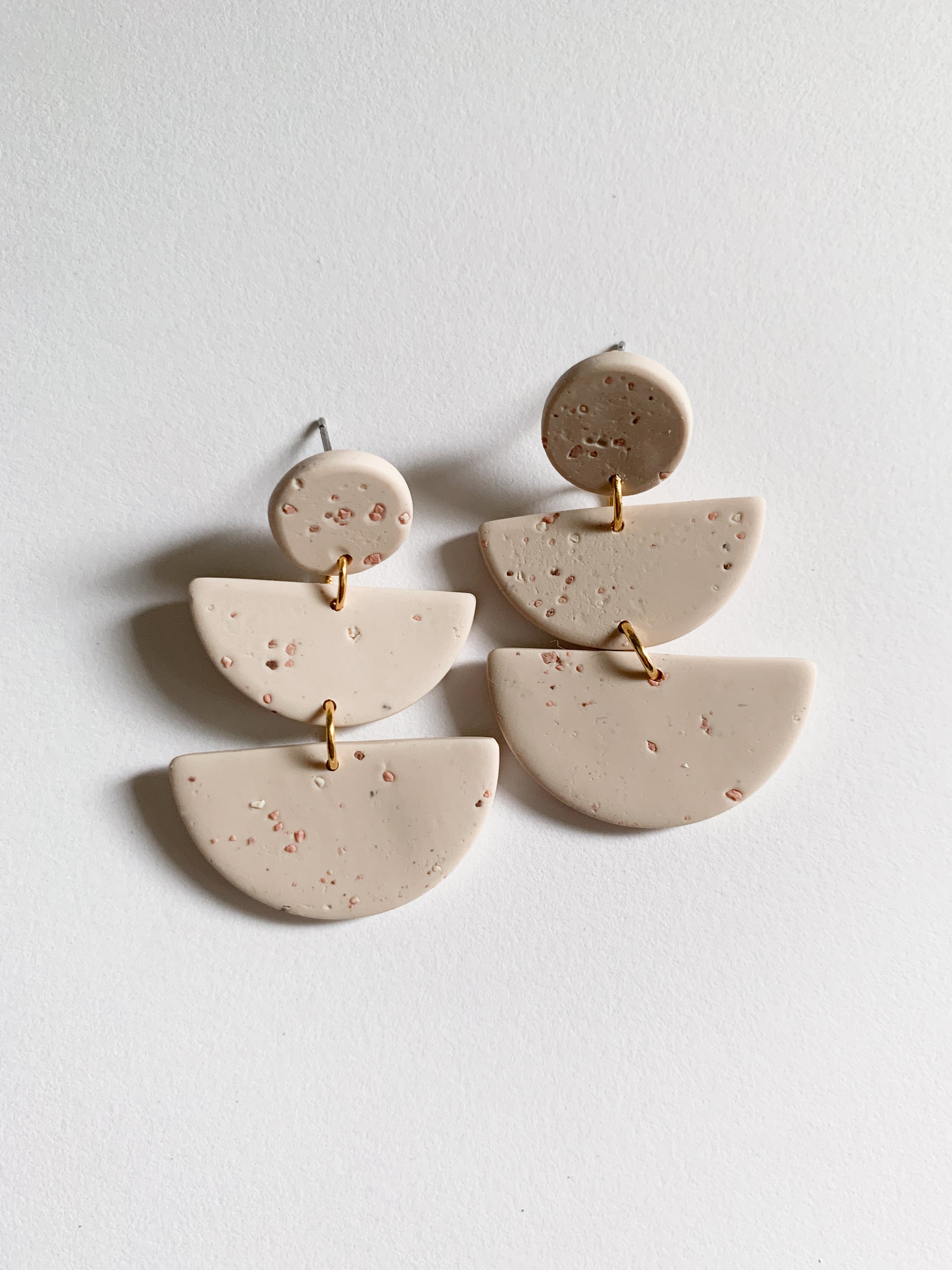 Each pair of Emily Oat Milk earrings is handmade, which means that the placement of the speckles will vary from pair to pair. This uniqueness ensures that your earrings are truly one-of-a-kind, allowing you to express your individuality through your accessories. The artisanal craftsmanship behind these earrings guarantees that you are wearing a piece of art that has been carefully created just for you.