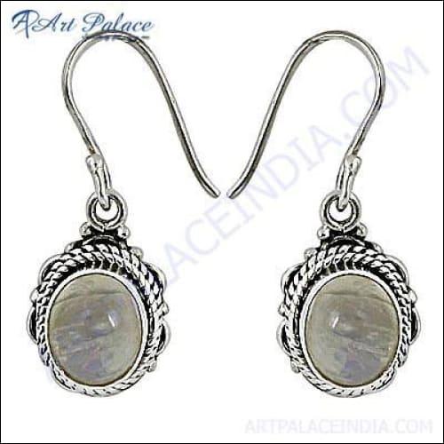 Discover the exquisite beauty of our Ethnic Designer Rainbow Moonstone Silver Earrings, a stunning accessory that embodies elegance and sophistication. These earrings are not just a piece of jewelry; they are a statement of style and grace, perfect for enhancing your ethnic or modern attire. Crafted with precision and care, these earrings feature mesmerizing rainbow moonstones that reflect light beautifully, creating a captivating effect that draws attention.