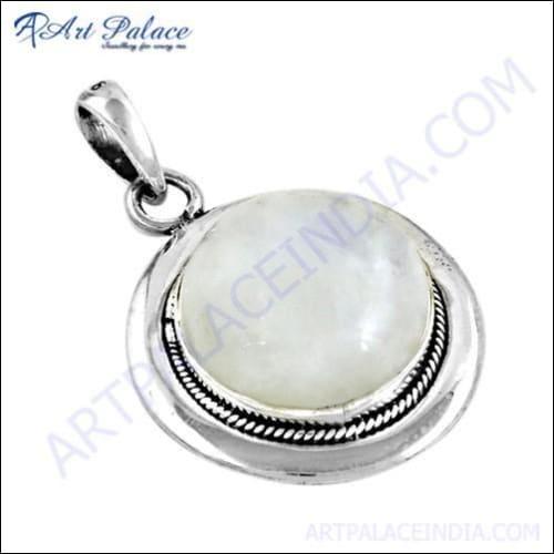 Dropship Ethnic Rainbow Moonstone Silver Pendant - White Gemstone Jewelry