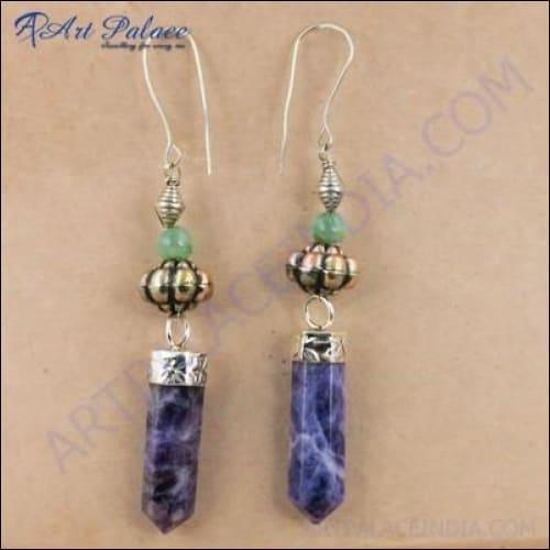 Dropship Exclusive Amethyst & Green Aventurine Gemstone Silver Earrings -