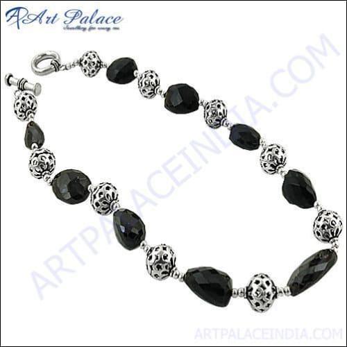 Introducing the Exclusive Black Onyx Gemstone Beads 925 Silver Necklace, a stunning piece of jewelry that embodies elegance and sophistication. This exquisite necklace is designed for those who appreciate the finer things in life, combining the rich, deep hues of black onyx with the shimmering allure of 925 silver. Each element of this necklace has been meticulously crafted to create a piece that is not only beautiful but also unique.