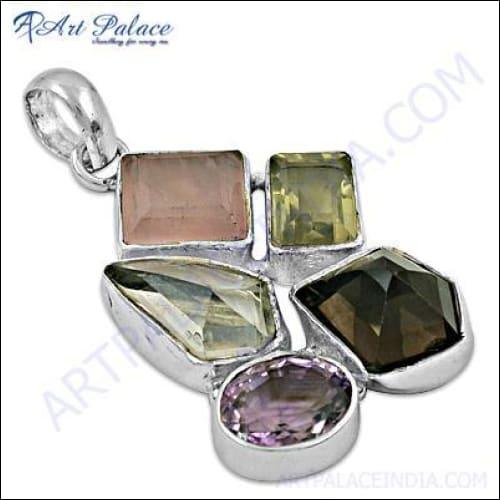Dropship Exclusive Multi-Gemstone Sterling Silver Pendant - Unique Jewelry