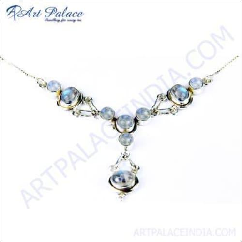 Elevate your jewelry collection with this exquisite necklace. At Art Palace, we are committed to delivering products of the highest quality, and our Exclusive Rainbow Moonstone Gemstone Silver Necklace is no exception. Order yours today and experience the elegance and beauty that this unique piece has to offer. Don't miss out on the chance to own a piece of jewelry that not only enhances your style but also embodies the artistry and craftsmanship of skilled artisans.