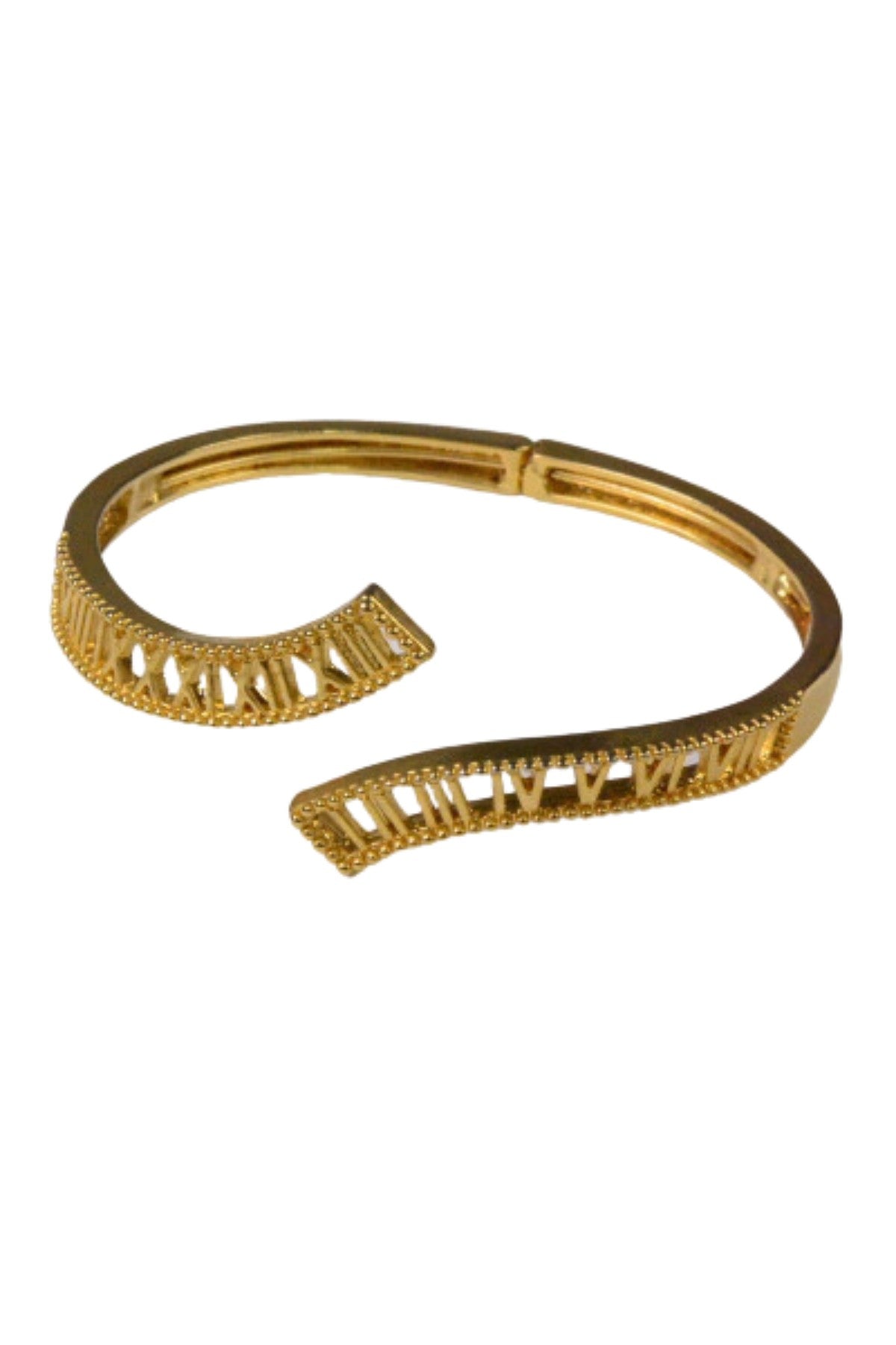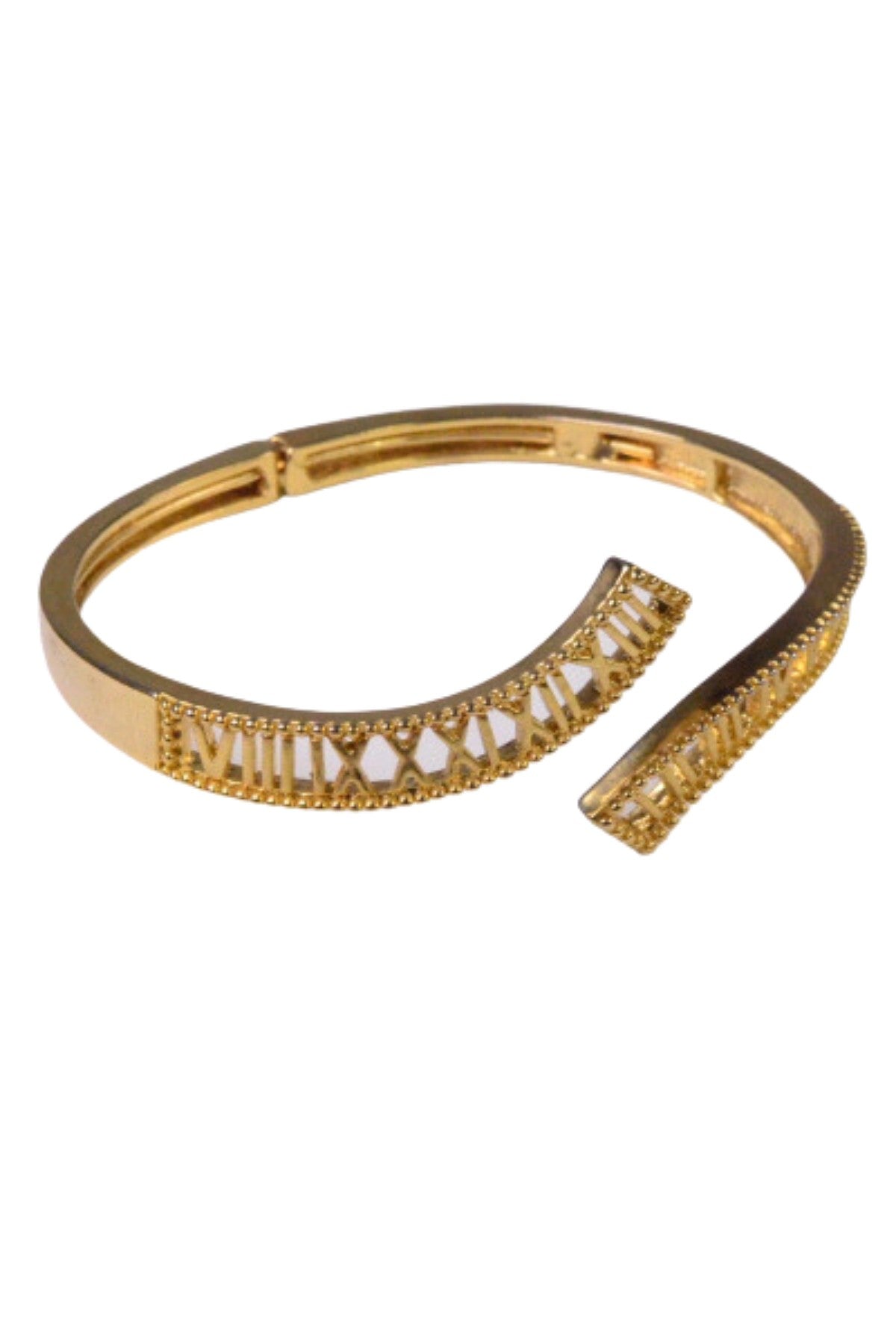 Introducing our exquisite Fashion Bracelet with Roman Numeral Design, a stunning accessory that combines elegance and modern style. This bracelet is not just a piece of jewelry; it is a statement of sophistication and individuality. Crafted with precision, it features a unique cut-out design that showcases Roman numerals, adding a touch of classic charm to your outfit.