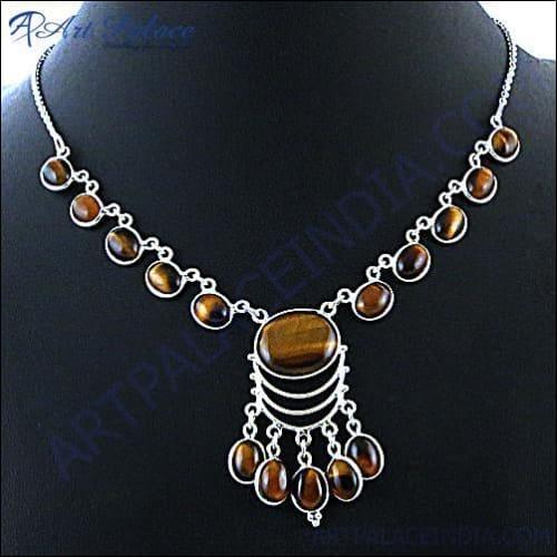 Dropship Fashionable 925 Silver Necklace with Tiger Eye Gemstone