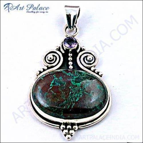 The design of the Festive Amethyst & Chrysocolla Fashion Silver Pendant is not only unique but also versatile. It can be worn with various outfits, from traditional attire to modern ensembles, making it a must-have accessory for any fashion-forward individual. The combination of amethyst and chrysocolla creates a mesmerizing effect that draws attention and compliments.