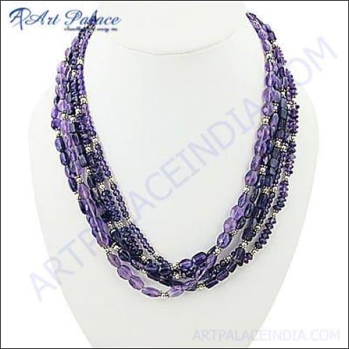 Introducing the Festive Amethyst Gemstone Silver Necklace, a stunning piece of fashionable jewelry that adds a touch of elegance to any outfit. Crafted with care by Art Palace, Jaipur, a renowned company with a legacy of manufacturing and exporting high-quality jewelry since 1981, this necklace is designed to impress.
