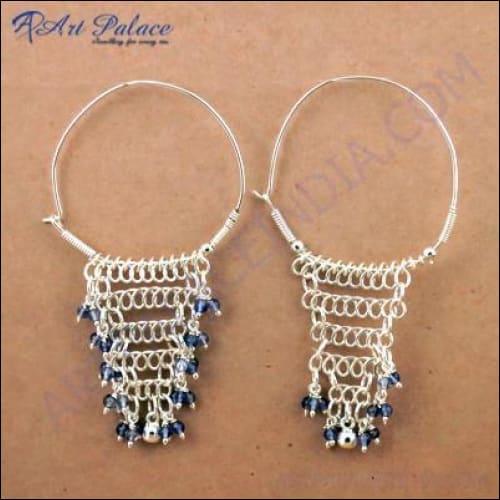 Dropship Festive Iolite Gemstone Silver Earrings - Stylish & Trendy Beaded