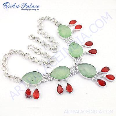 Festive Jewelry Carnelian & Prehnite Gemstone German Silver Necklace featuring vibrant gemstones and intricate German silver design.
