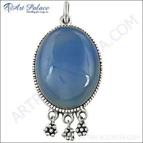 Dropship Festive Silver Pendant with Blue Chalcedony - Unique Jewelry