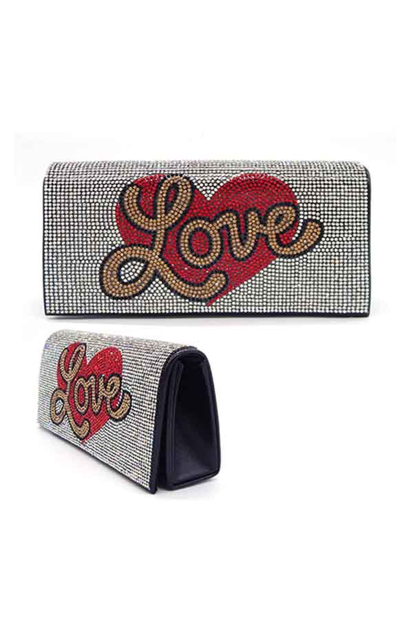 Pair this clutch with a little black dress for a classic look, or use it to add a touch of sparkle to a more casual outfit. The versatility of the Full Crystal Cover Love Evening Clutch allows it to complement a variety of styles, making it a must-have accessory for any fashion-forward individual.